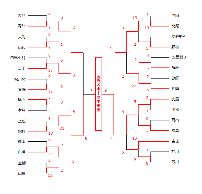 洗馬スポーツ少年団 | 1 | 0 | 0 | 0 | 0 | 4 | 5 |